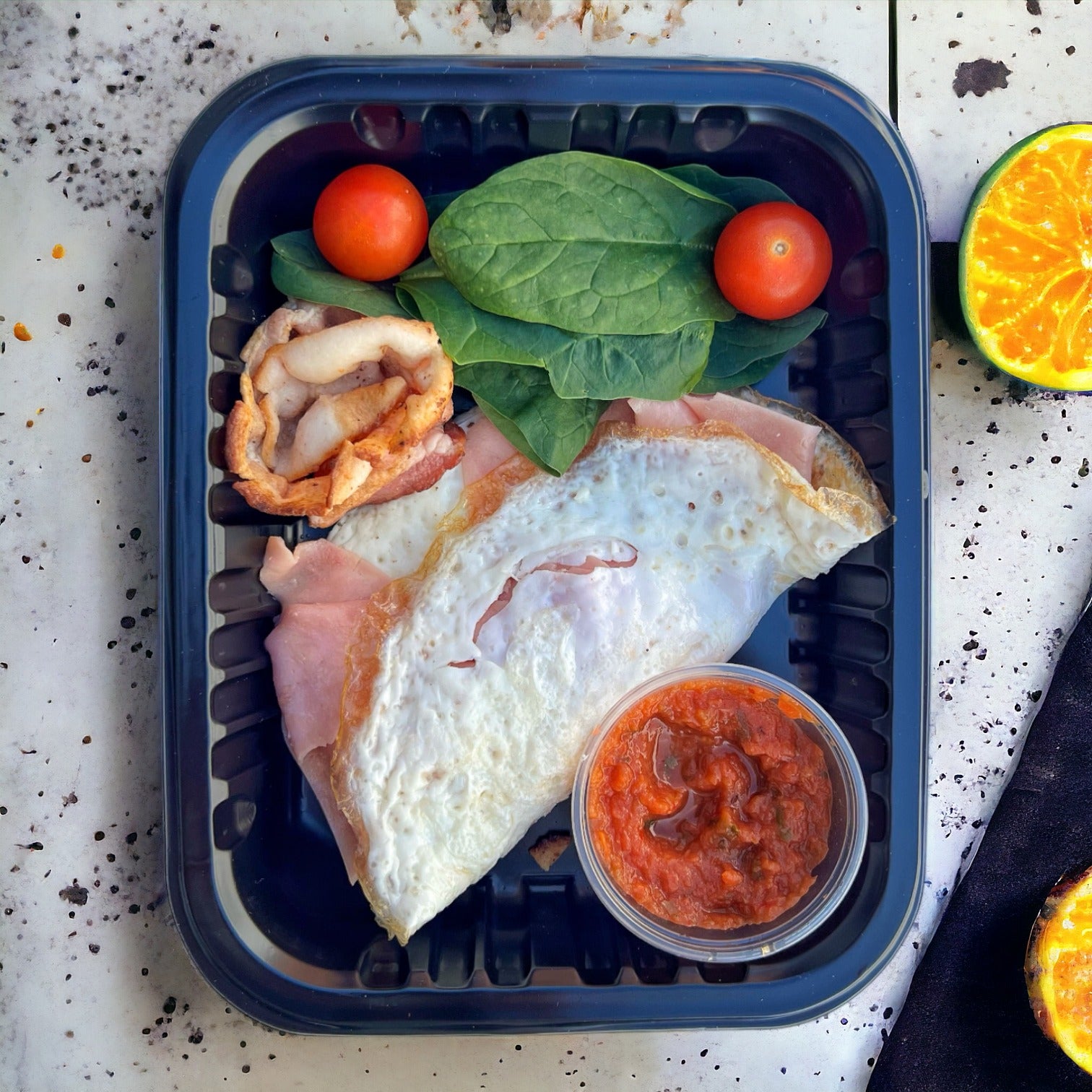 Disfruta de una opción ligera y deliciosa con nuestra Tortilla de Clara de Huevo. Clara de huevo, tocino, jamón y queso panela para un sabor excepcional.