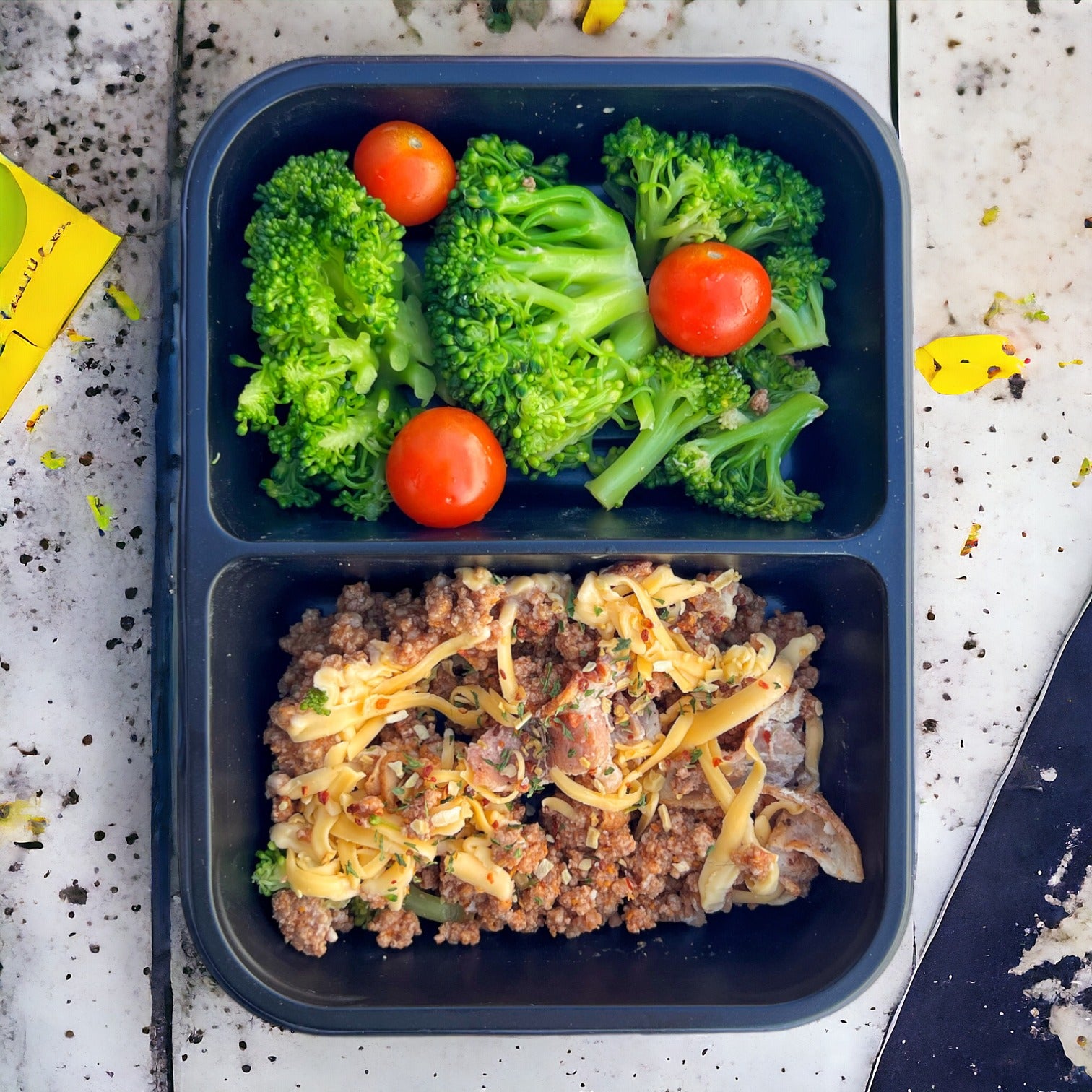 Saborea la audacia de nuestro Cheesy Cowboy. Carne de res sazonada con queso cheddar, brócoli y tocino en una mezcla irresistible.