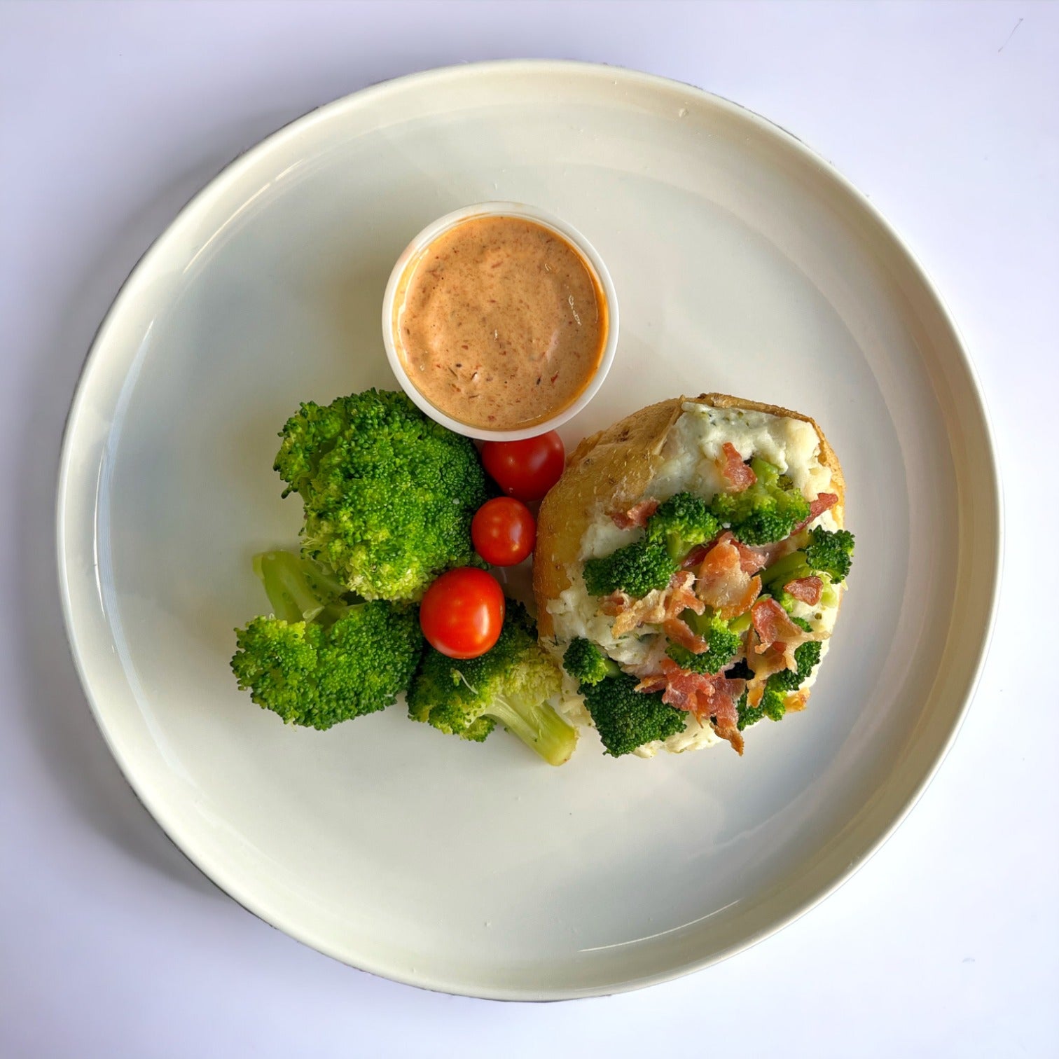 Disfruta de la combinación perfecta con nuestra Papa al Horno con Sirloin. Papa rellena con carne de res sirloin, queso mozzarella y aderezo cremoso.