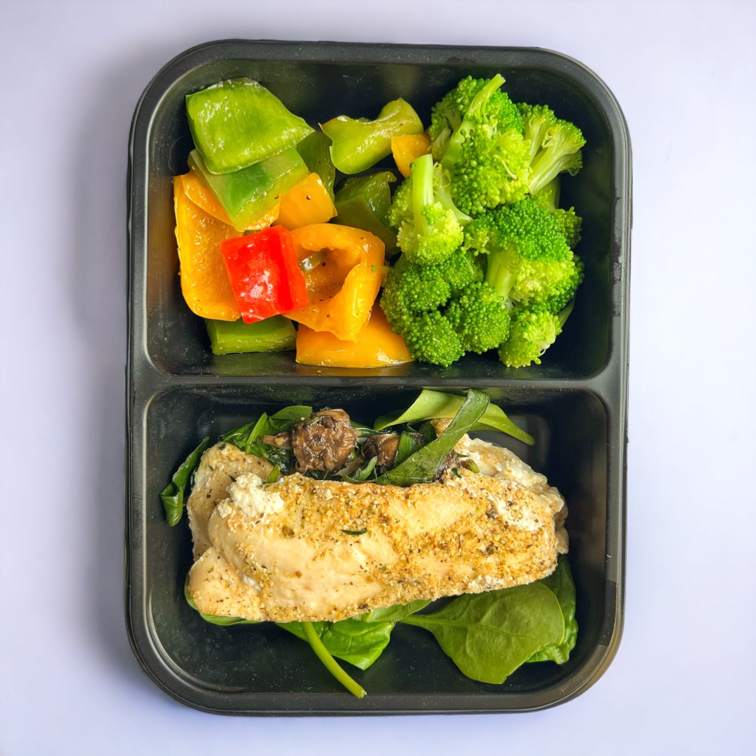 Deléitate con nuestra Pechuga Rellena de Espinacas, una mezcla equilibrada de sabores. Acompañada de brocoli al vapor y pimientos salteados, esta pechuga es la elección perfecta para una comida saludable y llena de sabor.
